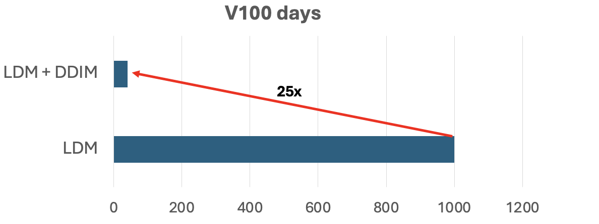 - DDIM significantly improves training efficiency (25x faster)